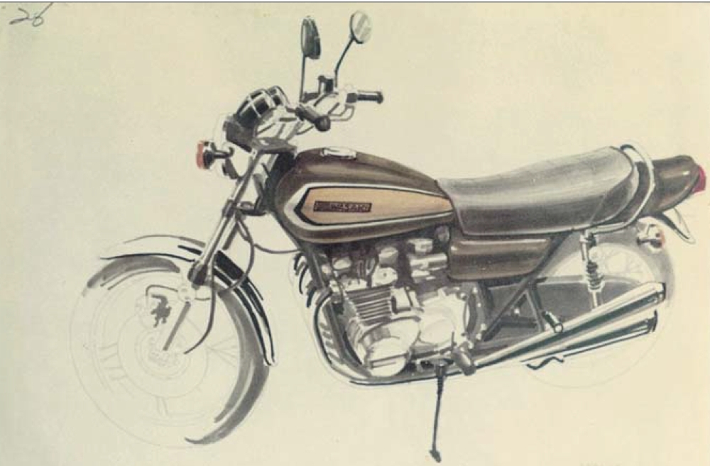 Therefore, the bore x stroke was squared and the exhaust was set at 100 cc, which reminds me of my favorite Harley-Davidson Sportster. Later, voluntary restrictions were introduced by the four Japanese manufacturers, but ultimately, they were not subject to self-regulation. This T-103 prototype was the second prototype and also what we call the mass-production prototype. Since this was our first time producing a 903 cc model, we used the mass-production prototype molds to manufacture the prototype. We also made a sand mold on the same surface to quickly produce a prototype that could be produced faster than with a mold, and we tested the parts in detail. We completed the prototype at the end of 1970. From then on, testing for the Z1 went smoothly, and we had the opportunity to familiarize ourselves with the American market. Mr. Tanegashima Tsune, who had worked with me on product planning for the Z1 from the beginning, and Tada Ken, who was responsible for the design. I met with Alan Masek from KMC at the café. The main purpose was to show KMC the final Z1 model and hear their opinion. We also wanted to conduct market research with Mr. Tanegashima on how we should proceed with product planning after the Z1. As a result, we decided that the next model to be developed after the Z1 would be a 650 cc four-stroke, four-cylinder model, a Z1 Junior, and a 600 cc multi-purpose model in parallel. Incidentally, at that time, the four-stroke engine development group was focusing all its efforts on developing the Z1, so freelancers were assigned to work on that model. However, the 600 cc single-cylinder engine was technically very difficult, and while we struggled, the sales department showed little interest, and development was halted after only one prototype. After returning to Japan, we worked hard to complete the Z1 at Ichigata Senri. Kawasaki was the first to produce such a four-stroke engine. We didn't know where to find specialized parts. So we formed a team and, to put it bluntly, searched all over Japan for suitable parts. With company Ozi, we were able to start working with a parts manufacturer that was on par with our competitors. This broadened our horizons and opened up new perspectives for both design and production. Production of the T-103 would normally begin with sand casting, as its displacement differed significantly from the N600. However, since we had already experienced the fundamental problems of the N600, we skipped this step and prepared the molds, tools, and equipment for mass production. We then manufactured a prototype. Serial production was completed in December 1971.