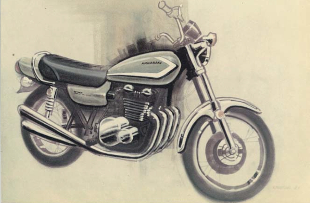 - The inline four-cylinder engine offers perfect durability and reliability. If these requirements were not met, Kawasaki would not enjoy market credibility, regardless of the four-stroke motorcycles it launched in the future. This was therefore a matter of utmost importance. The camshaft bearings at the shaft end were removed to prevent the rider's kneecap from contacting the cylinder head cover at the end of the intake camshaft. To ensure shaft rigidity, the camshaft was constructed from a chromium-molybdenum shaft with high rigidity (high elastic modulus) and white metal with good bearing properties, instead of cast iron with good bearing properties. 5) Adaptation to manufacturing and service capacities. Costs were neglected for the crankshaft and its bearings, and a robust, assembled crankshaft with six main bearings and roller bearings for the connecting rod bearings mounted directly on the crankpin was used. Since the ability to maintain sufficient cleanliness in the workshops could not yet be expected, roller bearings were used, which are less sensitive to dirt and foreign matter than when using plain bearings. At that time, assembled plain-bearing crankshafts did not require large investments in workshop equipment. During this phase, the product planning team created a so-called development plan, which defined the objectives of the developed model, market stability, cost targets, production volume, development budget, etc. However, there was no such department at the time, and the development engineers created plans and specifications themselves. From that point on, I was in constant contact with the department head, Mr. Otsuki, and worked on the drawing. First, we discussed the construction of the crankshaft. The crankshaft is the backbone of the engine and of utmost importance. If it gets stuck, the engine is hopelessly lost. I wholeheartedly agreed.